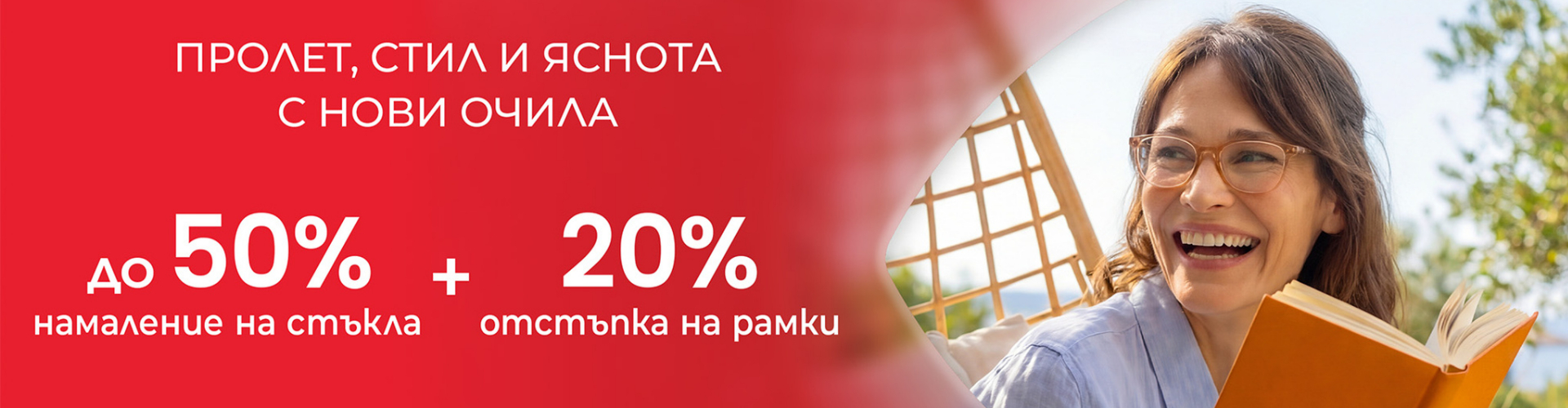 Up to 50% off on glass + 20% discount on frames
