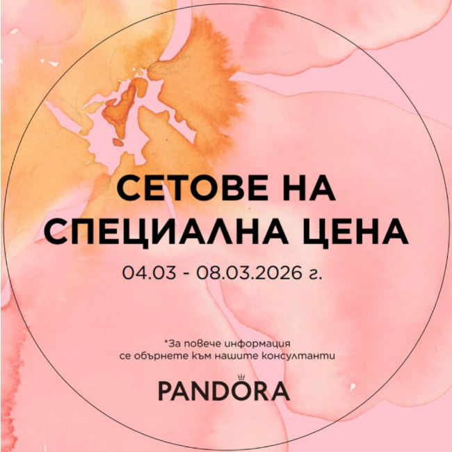 Отпразнувайте любимите си жени с Pandora! ✨🌷 Само в периода 04.03 – 08.03 може да откриете избрани сетове на специални цени. 🎁 За пълните условия на промоцията заповядайте в обекта на ниво 2.